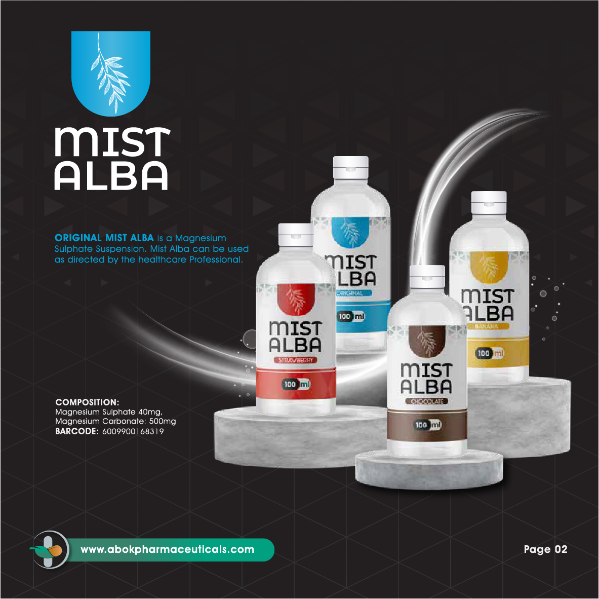 Original Mist Alba is a Magnesium Sulphate suspension. Medication used for many purposes including constipation, indigestion, magnesium deficiency, and pre-eclampsia.